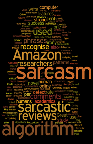 Apparently they ‘trained’ the algorithm by giving it a long list of sarcastic phrases from Amazon product reviews. Now were they detecting British or US sarcasm, I wonder?